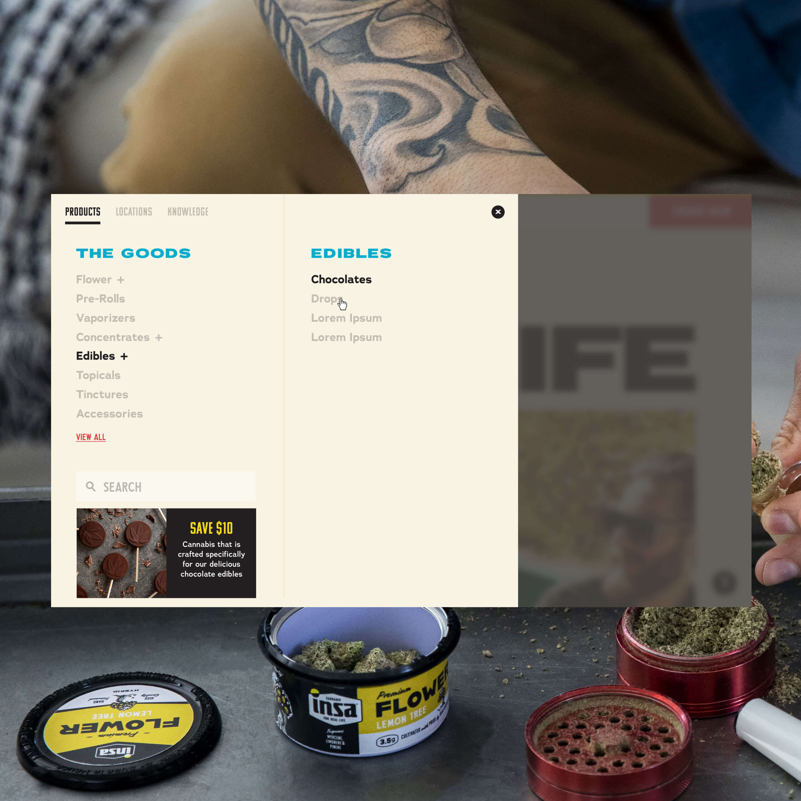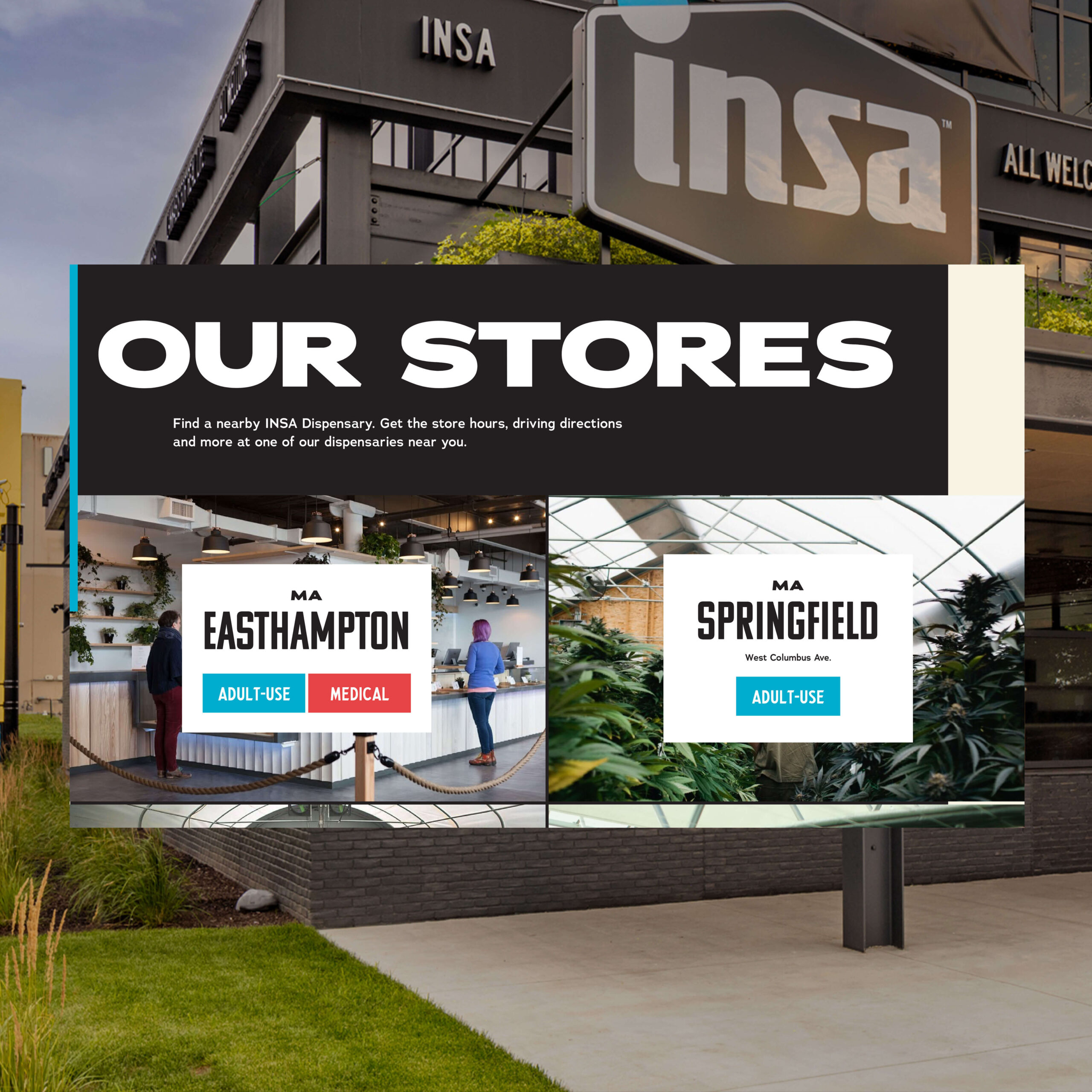 Activating our digital footprint across the landscape, INSA brings to life their digital identity and humble real life experience. The experience creates a relationship between the craftsmanship behind the brand for our down-to-earth audiences on each path through the website and the dispensary reality. A forget the talk, but truly walk-the-walk approach.