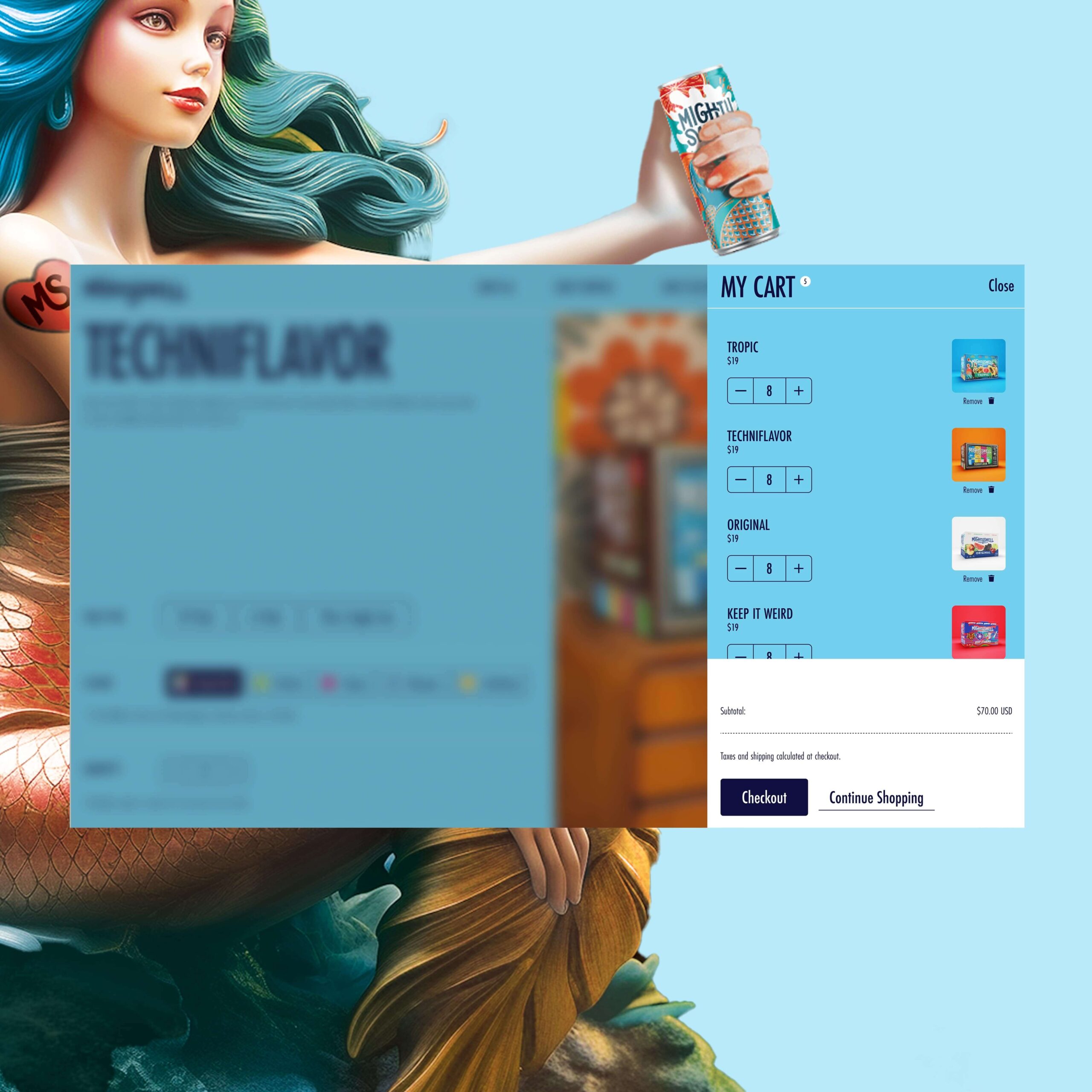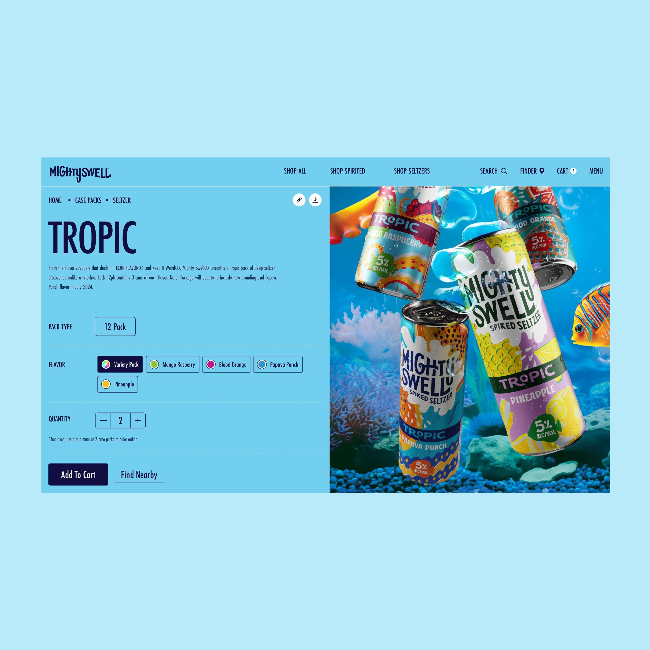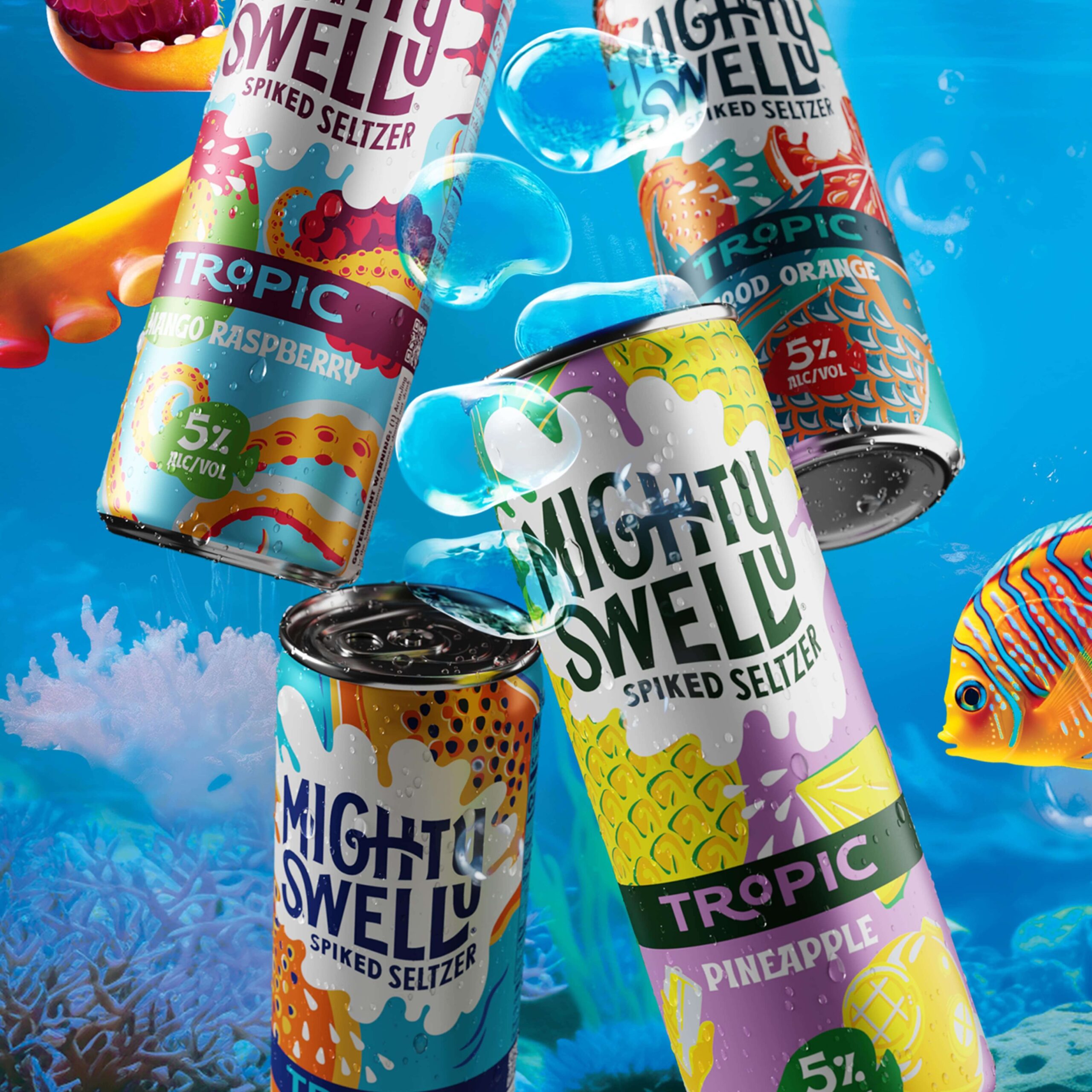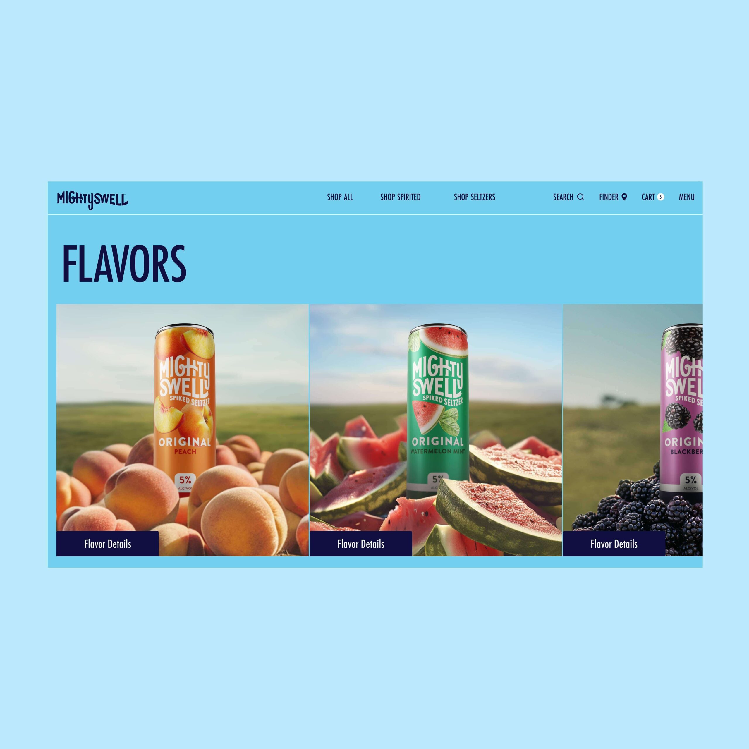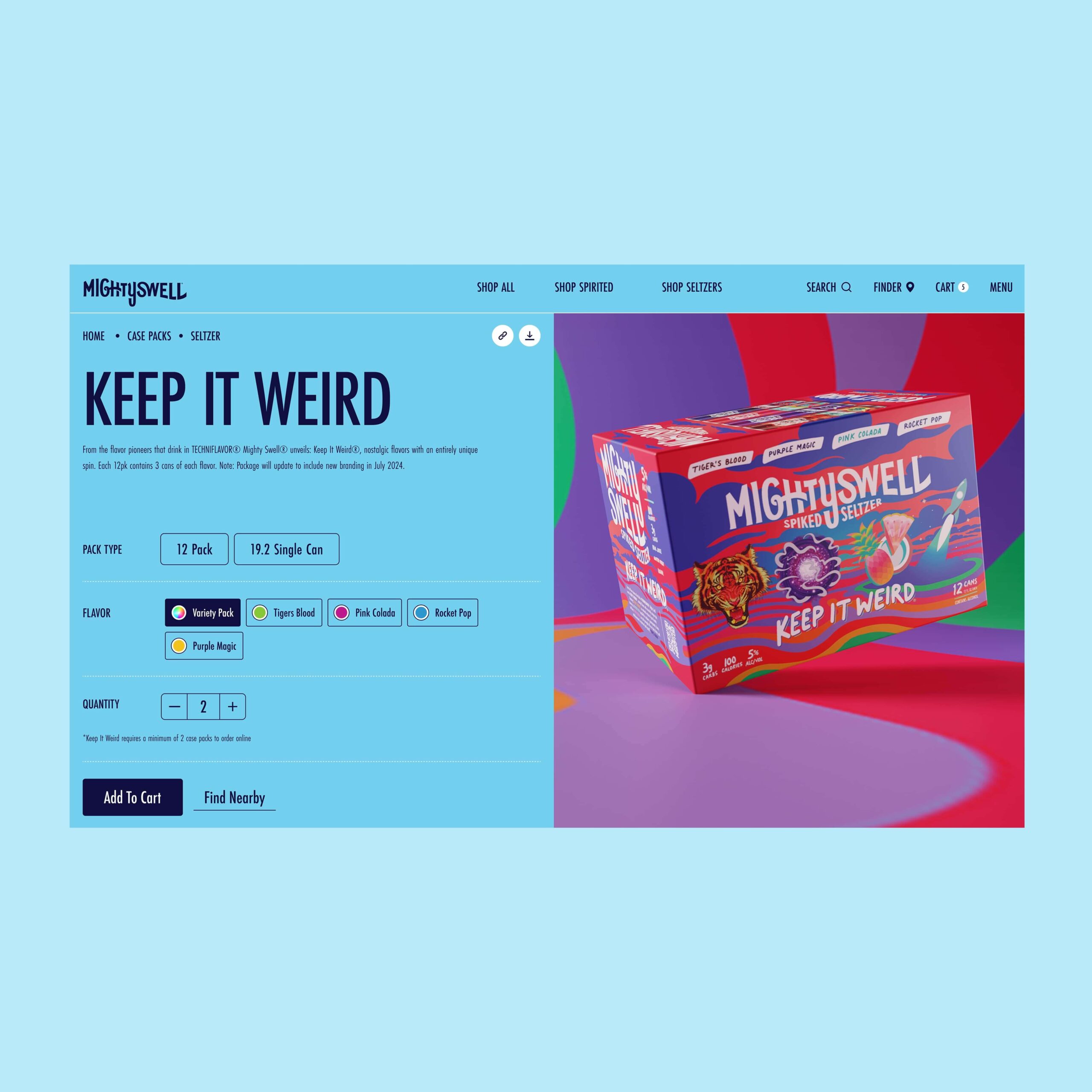 The world of Mighty Swell embodies sub-beverage identities of Techniflavor®, Ready To Disco®, Tropic®, Cherryosity®, Mastery®, Keep It Weird®, and Orginal®. Immersing ourselves in the business and consumer objectives provided a refreshing outlook for the future of the respective beverage ecosytem. Mighty Swell's new launch and go-to-market strategy leverages a custom beverage finder, omni-purchase opportunities. Each path through the website, audiences are able to live in each of the unique brand worlds of their favorite case packs.